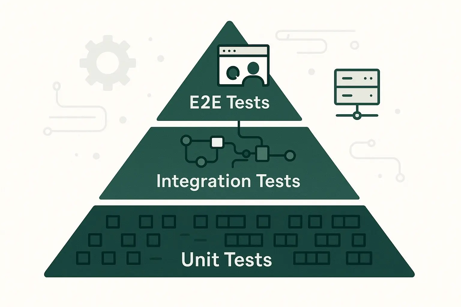 هرم تست معمولاً از سه لایه اصلی تشکیل شده است: تستهای واحد (Unit Tests)، تستهای یکپارچهسازی (Integration Tests) و تستهای سرتاسری یا End-to-End (E2E Tests).